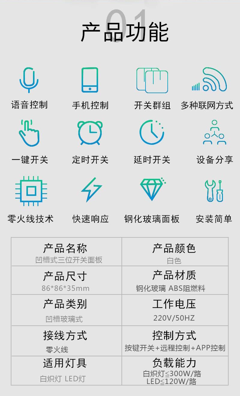 智能觸控凹槽式三位開關面板_百仕誠
